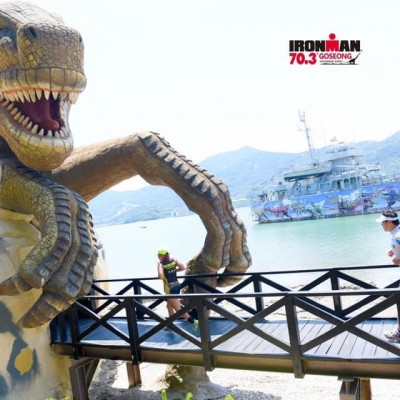 Arriving at transition on race day we were greeted with an awesome sunrise and a Korean drum band played as the swim started.