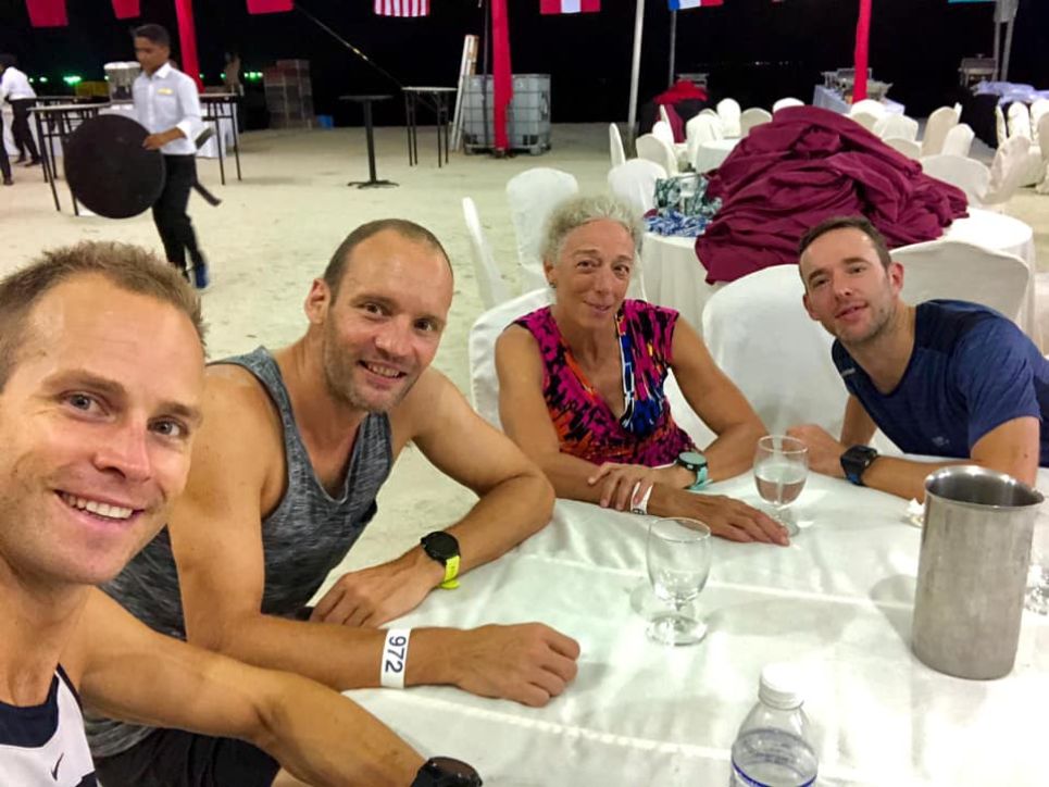 Anne sprinting across the line for 2nd place in the F60-64 category. The boys enjoying some well earned beers .