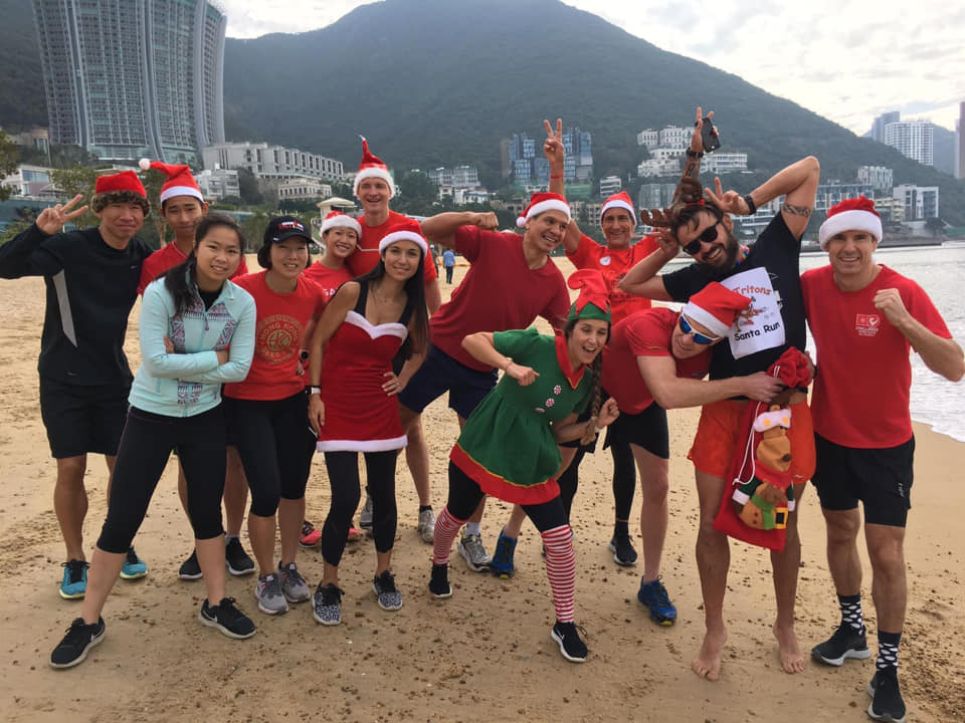 Warm up led by super mama, Veronica, Followed by a raindeer chase down the beach.